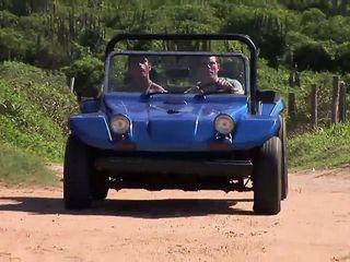 Blonde Milf mit prallen Titten wird von jungem Babe mit Dildo gefickt